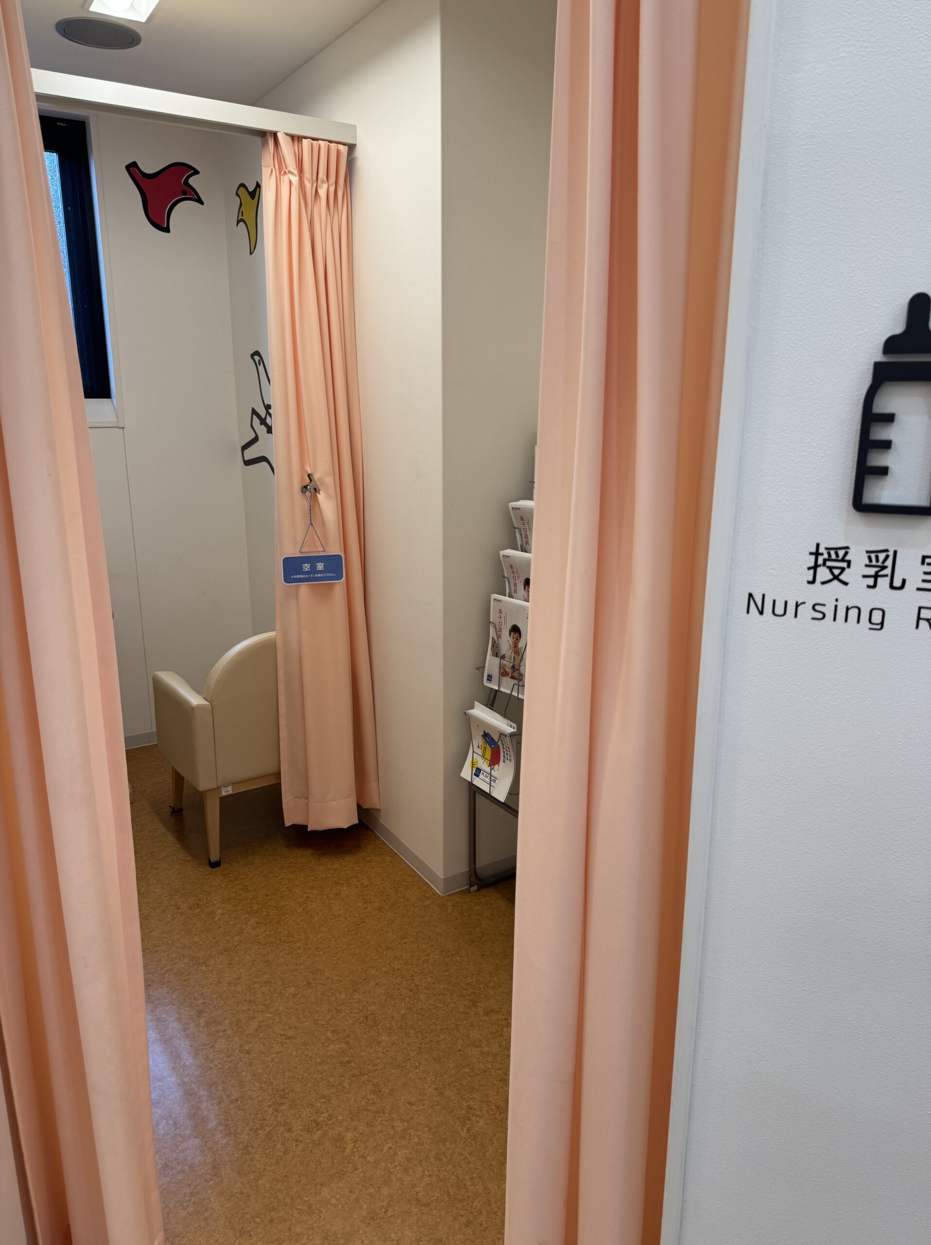 - 授乳室はカーテンで仕切れる個室タイプで落ち着ける雰囲気(写真には写ってませんが、ベビーチェアもあります◎)