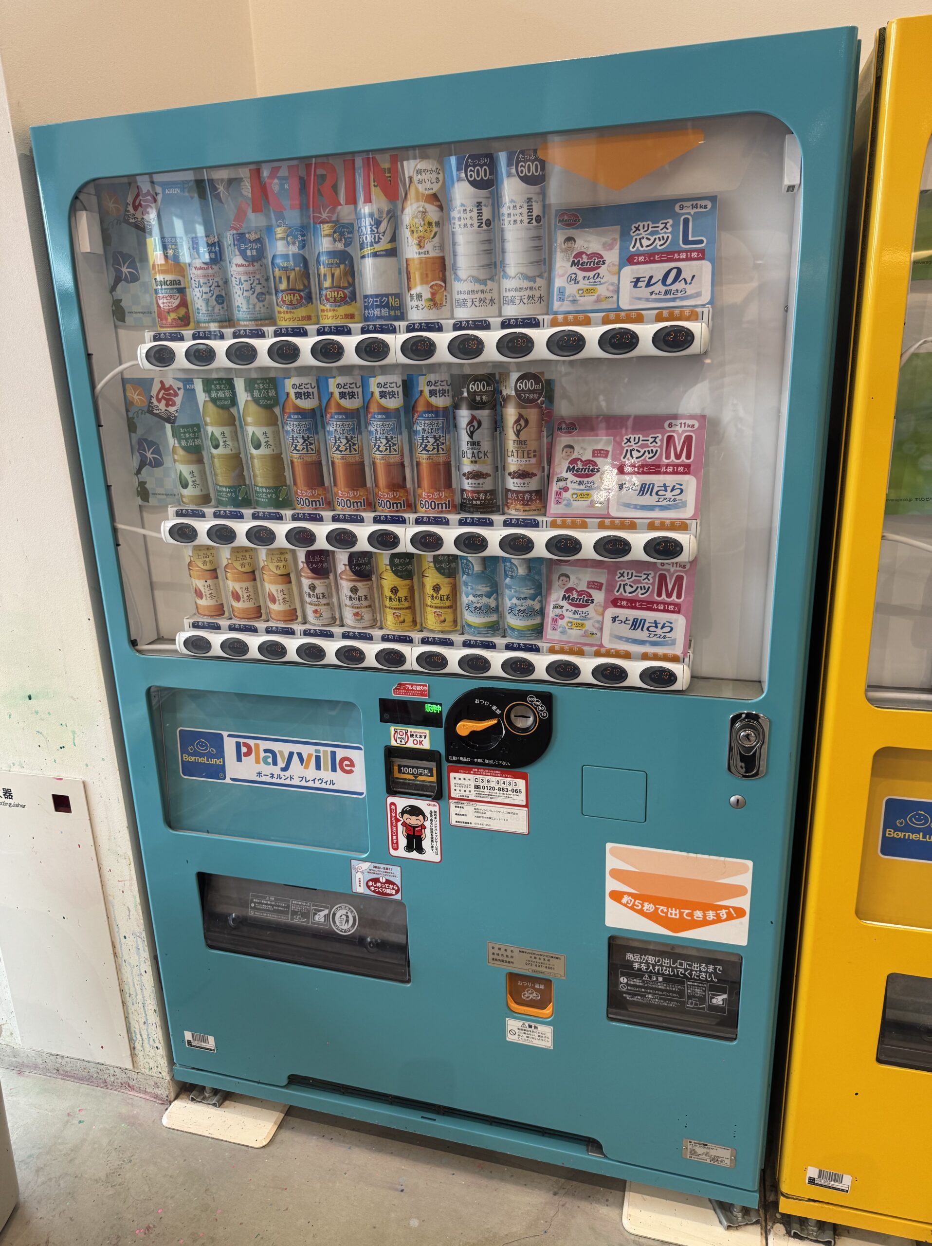- 自販機でジュース・お茶・コーヒーの他、紙パック飲料&おむつ(メリーズ)販売も!(※現金のみ)