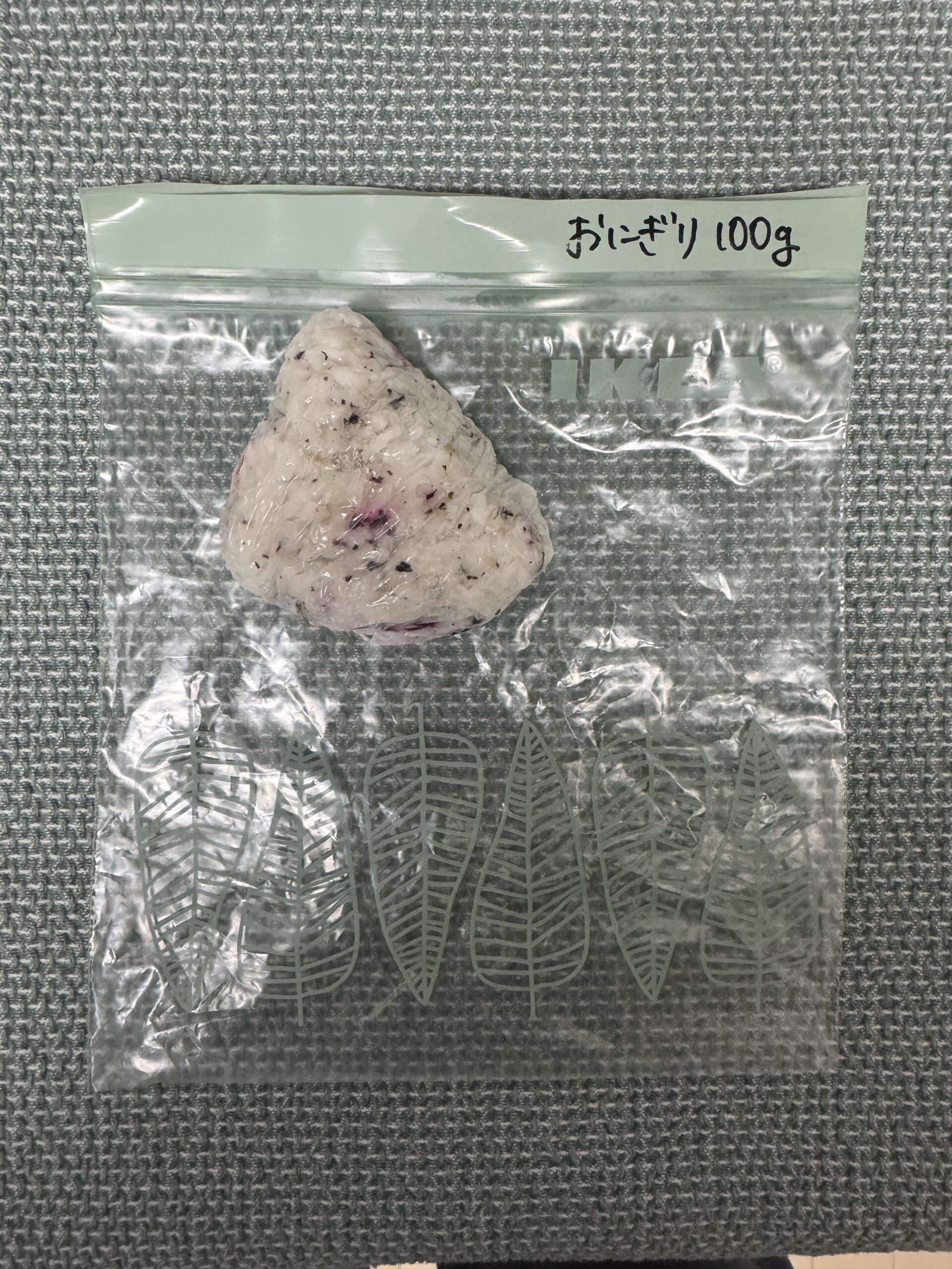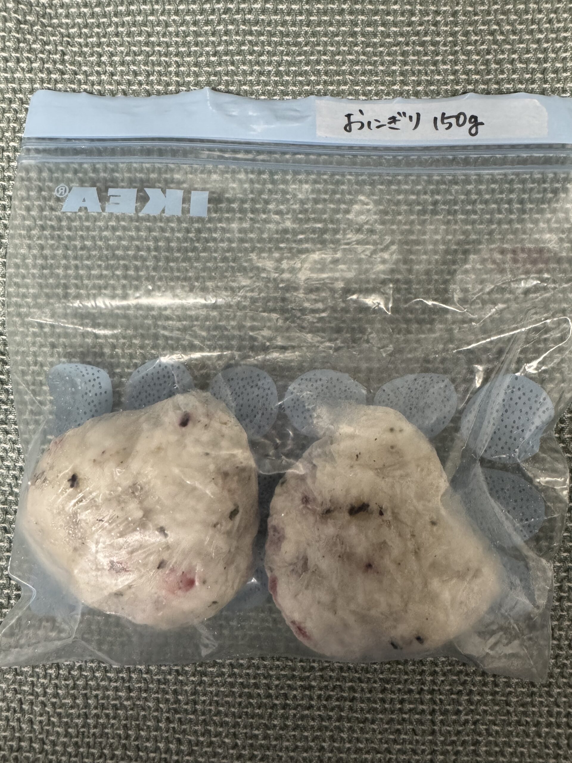 おにぎりは 100gずつ ジップ袋に入れてストック。